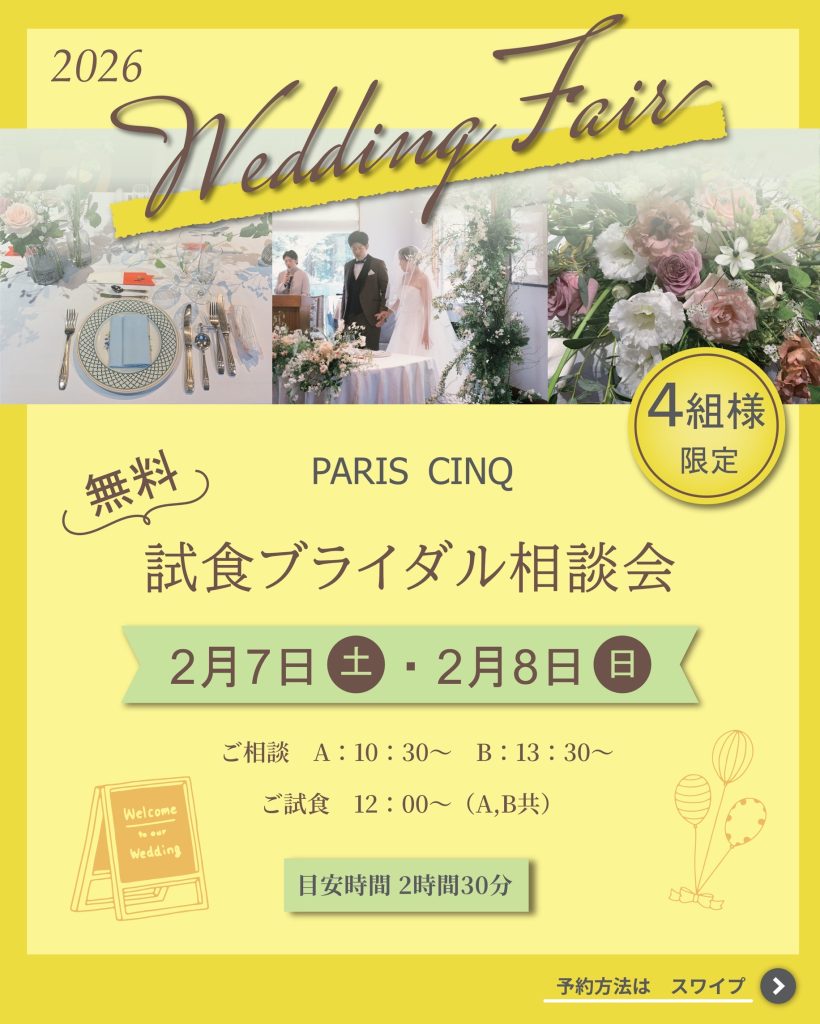 パリサンクでは2月7日~8日の2日間、ブライダルフェアを開催します。